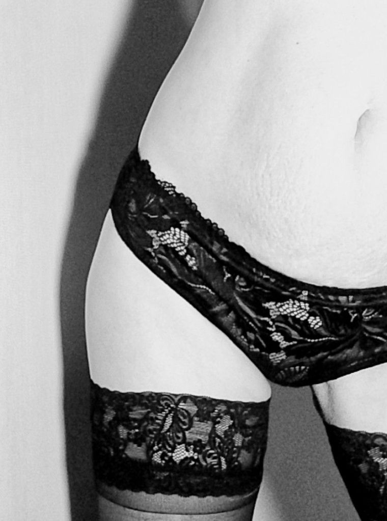 The corner of his mouth is curled into a cheeky smile, as the watches the way she moves from the door to his table. Something about her movements are more deliberate, and the certainty is what appeals. Her legs in particular take his attention. They are long, though at first you don’t see how long. They are shapely, he later discovers that its due to her athleticism. Her ankles, feet and toes are shapely and proportionate. She paints her toe nails. The lace top stockings she is wearing today are slick against her skin, waiting for his touch.